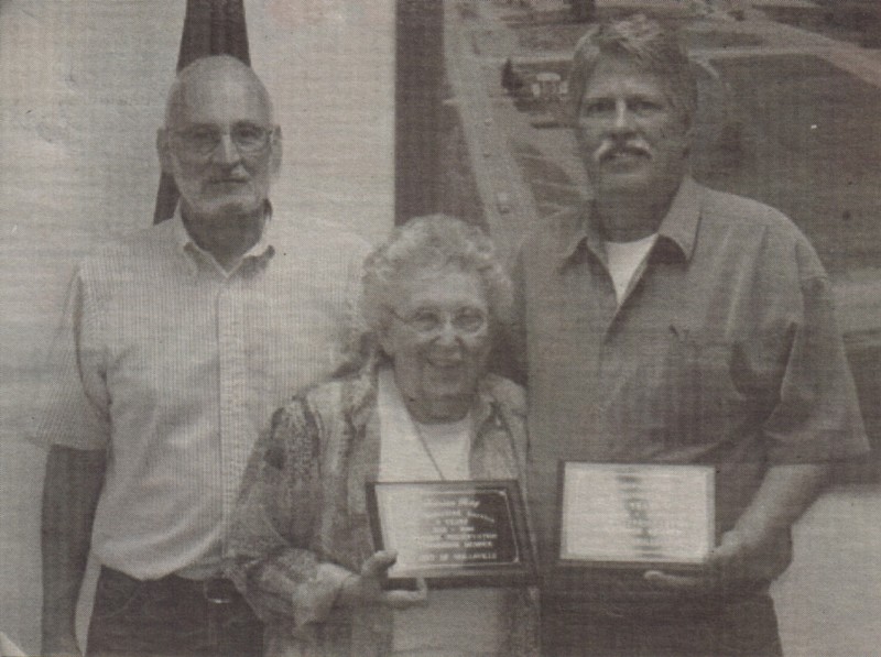 Historic Preservation Commission Chair Allan Hoesly (far left) poses with Marian Ray and Bruce Kunze, who display plaques present to them by the city of Neillsville honoring them for their dedicated service as Historic Preservation Commission members. Ray served on the commission for nine years and Kunze for eleven.
