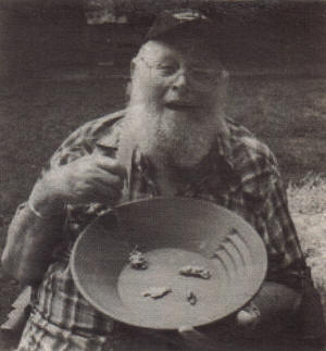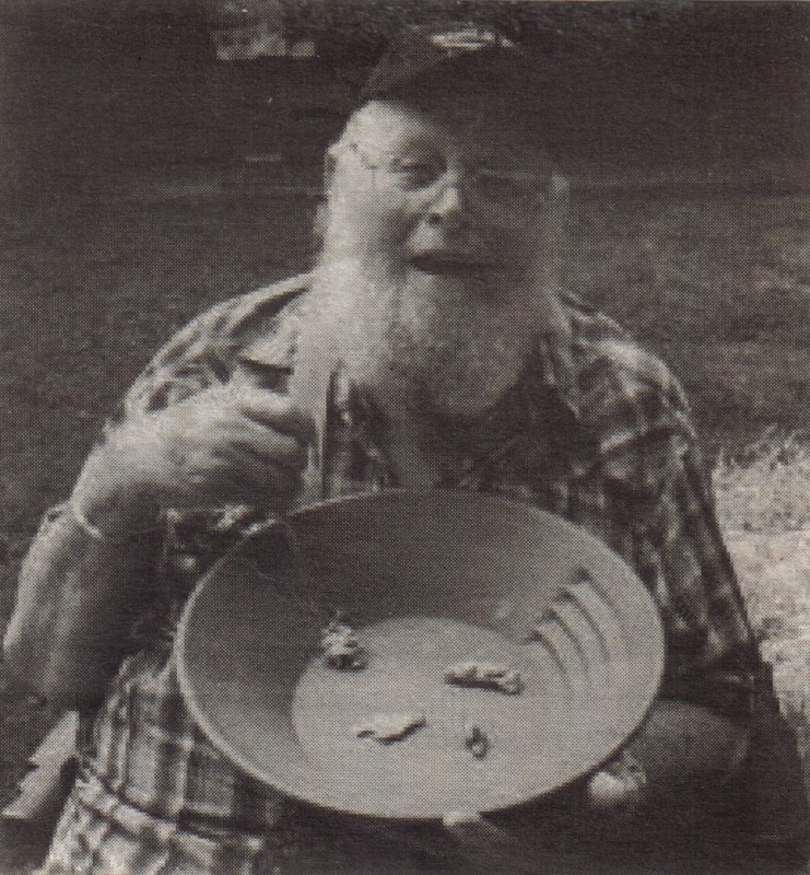 “Captain” Bob Minshall shows off his four nuggets of gold, each worth several thousands of dollars