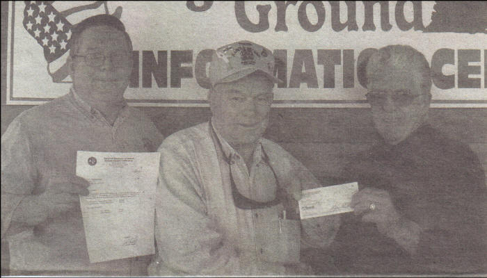 John Fredrickson (left) and Ben Anderson from the Disabled American Veterans, Barren County Chapter 52 in Rice Lake, Wisconsin presented Kirk Rodman (right) from The Highground in Neillsville, Wisconsin a check for $250 to support both the new Korean Veterans Tribute and the missions of healing and education at the Veterans Park. ?The DAV Chapter 52 from Rice Lake has been a long time supporter of The Highground and this generous gift shows their continuing efforts on behalf of all veterans in Wisconsin,? Rodman said. (Contributed photo)