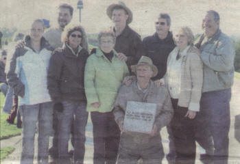 U. S. military veterans Craig Vandeberg (above, holding stone) and his father, Russell Vandeberg (below, holding stone) pose with family and friends after both were honored with Legacy Stones Saturday, Oct. 4, at The Highground. Craig Vandeberg who served in the U. S. Marines is a Neillsville High School graduate who resides in Hayward, CA. The legacy stones were placed next to each other. (Contributed photo)
