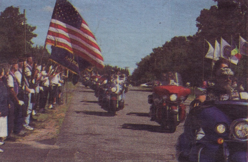 One hundred seventy-five motorcycles registered for the guided tours throughout the day. The motorcycle procession to The Highground was an awesome experience. Flags flown by The American Legion Riders, Neillsville American Legion Post 73, Greenwood American Legion Post 238, Boyd American legion Post 326 and the Neillsville Boy Scouts lined the road into The Highground Plaza parking lot. Riders rode in to the tolling of the replica Liberty Bell and cheers by visitors. Following a short ceremony, a picnic lunch was enjoyed by everyone.