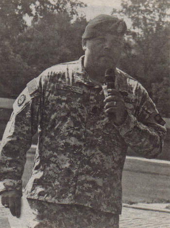 Sgt. Maj. Randall Boss from Fort McCoy addresses Ride to Remember participants at The Highground, Saturday, August 21, 2010. (Photo by Nancy Halterman/Clark County Press)