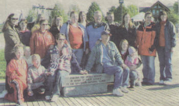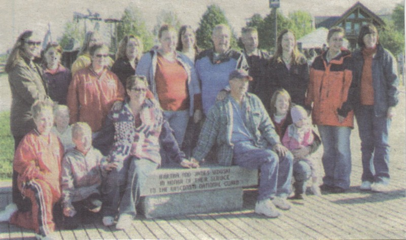 Neillsville residents Jim and Martha Viduski (seated on bench) pose with family and friends Saturday, Oct. 4, 2008, after they were honored for their Wisconsin National Guard service with a granite bench at The Highground from the Friends of the Wisconsin National Guard.