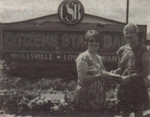 Darlene Zschernitz presenting a pledge to Lori Nordman on behalf of Citizens State Bank. (Contributed Photo)
