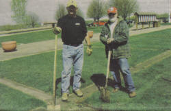 Lots of “Shovel-ready jobs available Cleanup at The Highground last week included many shovel-ready jobs with edging to be done around the walkways. Larry Dessner of Columbus Junction, IA, and Bill Connelly of Augusta were up to the task.