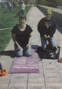 No Sleeping on this job! Don’t be fooled by the cushy mat, as there is no sleeping on this job. Chris Wetzel of Rice Lake (left) and Mary Dick of Neillsville volunteered for the back-breaking job of touching up names on the Legacy Stones during clean up at The Highground. (All photos were taken by Linda Cottrell-Sanders/Clark County Press.