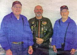 Local World War II veterans, Robert Luchterhand (left) and Bernard Walker (right), recently returned from an Honor Flight trip to Washington, D.C., where they visited the National World War II Memorial. Donald Simpson (center) accompanied them as their guardian. (Photo by Nancy Halterman/Clark County Press)