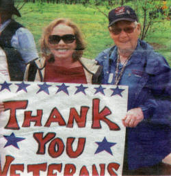 When this greeter asked WWII veteran Bernard Walker to help hold one side of her poster, He was more than happy to do so. (Contributed photo)
