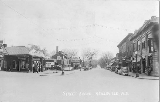 Birdseye View of Downtown, Neillsville, Hewitt So. View (1909), Neillsville--Hewitt St. South, Neillsville Downtown, Neillsville Downtown, Photo: Hewitt St., Neillsville, WI 8 DEC 1915, Neillsville looking south (30 Sep. 1918), Neillsville (1919), Photo: Neillsville Main Street, Neillsville View to South, Neillsville View From 5th & Hewitt, Neillsville, Hewitt St. View To The North; Street Scene (1935); 1992 aerial View (Downtown Neillsville).