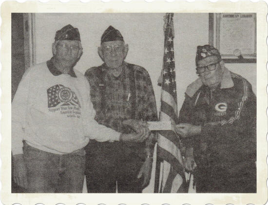 Irv Marg (left), of the Neillsville Men?s Club, earlier this month presented a $1,000 check on behalf of the club toward the Neillsville Legion Hall building project. Accepting the donation for the Legion Post were Don Kalsow (center) and Owen Haigh, two long-time Legion members. (Contributed photo) |