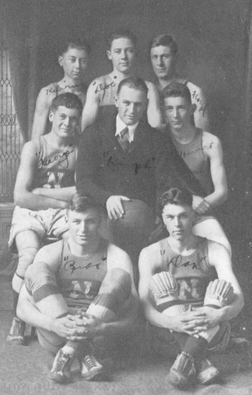 Boy's Basketball: Kelvin Klopf-L.F.; Floyd Mertes-R.F.; Ruben Schipper-Capt., Center; Donald Irvine-L.G.; George Free-R.G.; Wendell Bradbury-1st Sub.; Herbert Smith-2nd Sub.; H. M. Knipfel, Coach.