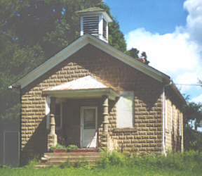 Silver Crest School was located in the Town of Pine Valley at the corner of West King Rd. & Sidney Ave., Neillsville, WI. In the photo above, an outside entry to the basement has been added on the left side and there are many more trees surrounding it than when it was a schoolhouse. The photo to the left was contributed by Sandra Little and the one to the right was taken during the summer of 2000 by Dolores (Mohr) Kenyon. |