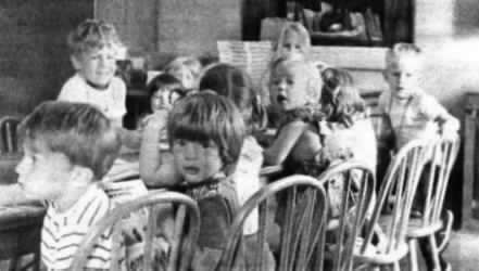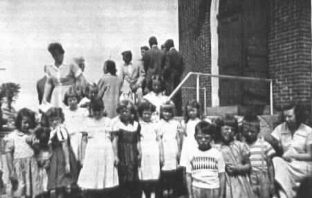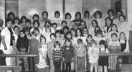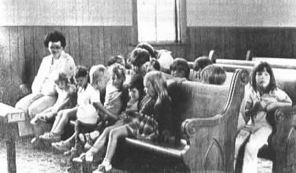 St. John’s Lutheran Church Spencer, Clark Co., Wisconsin 1878 – 1978 Contributed by Jean Dahl & transcribed by Tanya Paschke St. John’s Sunday School The children of St. John’s enroll in Sunday School soon after their third birthday or as soon as they will sit still and enjoy the Bible stories. They attend until they are confirmed. Before the parish hall was built the younger classes met in the little brick school. They then graduated to the church building where the older classes met. Now the upper grade classes meet in the church basement and the younger classes meet in the parish hall. Our Christmas program practice always starts the first Sunday following Thanksgiving and ends with the last Sunday before Christmas. This practice is followed by a party given for the children. The program has been held on Christmas Eve since 1882. After the program the children are given a sack of candy. The church members donate. money for the candy and the teachers pack the bags. The children have had the opportunity to sing at a nursing home and to put on their Christmas program for the elderly. The children receive many smiles or even a squeeze of the hand to show how much the older people enjoy it. It is also a practice that the children sing in church each month on the fourth Sunday. The Sunday School has taken part in many mission projects. Money from the last Sunday of each month is used for mission work. In February of each year, money is collected on the Sunday before Valentines Day. This is used for Hearts For Jesus, another mission project. The money has been used to help a blind school and to help build a church in New Guinea. The children also brought articles to make up some Klenli-Kits to send to World Relief. Sunday School teachers have many anxious, surprising, and rewarding moments. Usually the teachers are sure the Christmas program will be a flop, only to find that the children surprise them by doing their very best. A teacher’s time is interlaced with humorous things also. One Christmas program there were angels looking at a cross. One little boy had an itch, and he ended up with his wings tipped to the side and his garland over one eye, but he still looked up at the cross. There was the teacher who was teaching the word love. One of her little boys raised his hand to say, "I know what it is ‘cause all the girls in school love me." One Easter morning during a film strip, one little girl surprised us. Most of the children would bring along something small to chew on, but this little girl opened her purse to pull out a dill pickle and ate it. A Sunday School can only be successful through the efforts of many dedicated persons who serve Christ by teaching His little children. St. John’s has been blessed with many workers who have given their time and talents to the Lord. It would be extremely hard to name all who have served as teachers and very easy to accidentally omit someone’s name. St. John’s thanks all who have served in the past and who now serve. St. John’s first Bible School, June 1953 SUNDAY SCHOOL 1977 – 1978 Row 1: Terry Hopfensperger, Stephanie Marden, Bryan Hopfensperger, Jenni Martin, Kimberly Ault, Craig Berger. Row 2: Michelle Marden, Carrie Seefeldt, Tami Hopfensperger, Troy Luepke, Neil Neumann, Jeana Mellenthin, Denise Neumann, Philann Neumann, Wendy Hopfensperger, Tricia Kilty, Valarie Jacobitz. Row 3: Pete Mellenthin, (superintendent), Virjean Mellenthin (teacher), Tim Gallion, Cory Seefeldt, Patrick Kilty, Janell Schwantes, Tim Ault, Dale Berger, Renee Mellenthin, Vickie Jacobitz, Kathryn Sundell. Row 4: Penny Miller, Jeffery Hanson, April Neumann, Denise Marden, John Ault, Chad Neumann, Richard Freezy, Shane Vaughn, Jacqueline Hebert, Michelle Oelrich, Mrs. Alvera Klein (teacher). Row 5: Mrs. Dianne Vaughan (teacher), DeAnn Hanson, Steve Murphy, Jeffrey Day, Wade Vaughan, Terry Gallion, Todd Seefeldt, Steve Gallion, Sara Stroetz, Mrs. Irene Toltzman (teacher), Mrs. Leona Wachholz (teacher). Sunday School Vacation Bible School Kindergarten Class of 1955 Sunday School