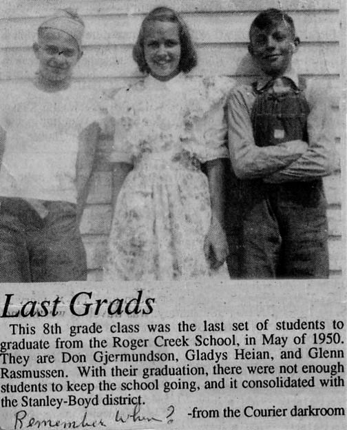 graduating class: Don Gjermundson, Gladys Heian, and Glenn Rasmussen.