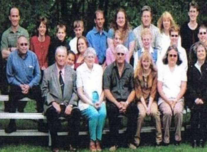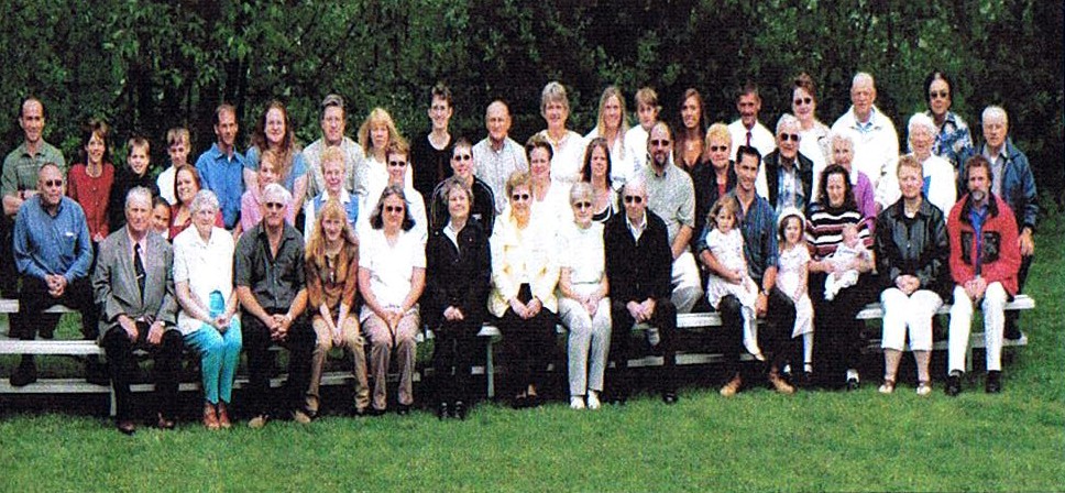Front row left to right: Duane and Ila Meacham, John, Jennifer, and Jane Meacham, Mary Gaetz, Lois Block, Audris and Ralph Gaetz, Lance, Iva, Elsa, Mary and Olivia Schuette, Brenda and David Newman.