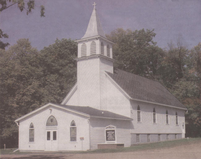 Friedens Gemeinde, Town of Unity, Wisconsin, was organized in 1882. In 1907, a new church was built which was located 1 ½ miles north of Riplinger until it was moved to its present location in 1923. At this time the congregation of Friedens Gemeinde renamed the church to Saint John’s Congregation.