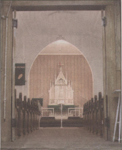 In 1923, the church was moved to Riplinger by steam engine, by Arthur Wisnosky and others. A mover from Spencer started to move it and a mover from Neillsville finished the job. Land for the new location was purchased from the Riplinger’s for $200.00. Lynn Pickett and Otto Schulz built the north addition (Altar) in 1943. Ten members of the congregation donated ten stained glass windows. In 1945, the first school, built in 1915 in Riplinger, was purchased from the District for $1,000.00 and was remodeled into a parsonage for Rev. August Quandt (1945 – 1949). In 1950, during Rev. Pagels stay, the small church which served as Sunday school, and was located on the southwest corner of the present church property, was moved to its present location at the parsonage for a garage (I rode the roof to clear the wires). Rueben and Olga Rex purchased the parsonage in 1964.