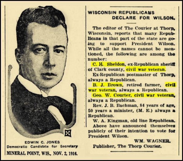 Snippet of the 1916 Official Ballot 27 Oct 1916--Showing Edwin C. Jones running for Sec. of State.