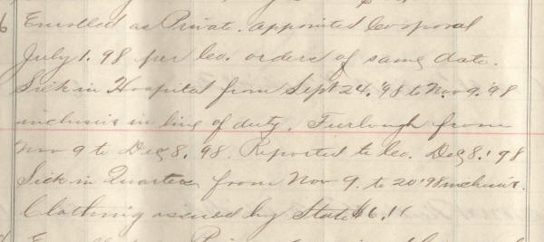 6 | Calway, Walter R. | Sgt | 4/28/1898 | Neillsville, Wis. | Capt Hommel | 2 yr | 5/11/98 | Camp Harvey, | Capt Buck | Maj Walton | 10/31/98 | Neillsville, Wis. | Neillsville, Wis. | Remarks | 2 | 4 | 31.60 | 46.08 | 20.11 | 10.75 | 76.94 | 76.94 | Signature | |