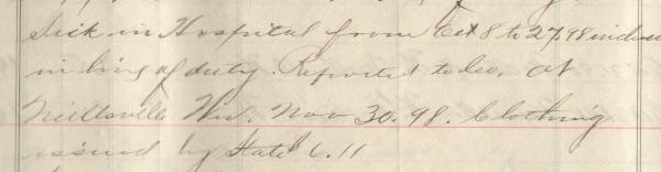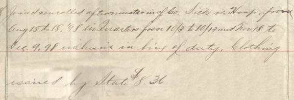 41 | Eldridge, Albert | Pvt | 6/25/1898 | Neillsville, Wis. | Lt. Jackson | 2 yr | 6/25/98 | Neillsville | Lt. Jackson | Maj Ray | 10/31/98 | Nix Corner, Wis. | Neillsville, Wis. | Remarks | 2 | 4 | 15.60 | 33.28 | 14.35 | 16.25 | 63.88 | .16 | 63.72 | Signature |