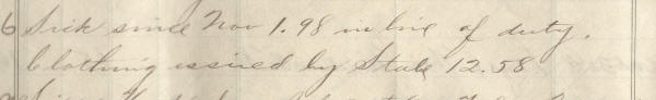 36 | Cole, Willard | Pvt | 6/25/1898 | Neillsville, Wis. | Lt. Jackson | 2 yr | 5/11/98 | Neillsville | Capt Buck | Maj Ray | 10/31/98 | Humbird, Wis. | Neillsville, Wis. | Remarks | 2 | 4 | 15.60 | 33.28 | 12.47 | 16.25 | 62.00 | .16 | 61.84 | Signature |