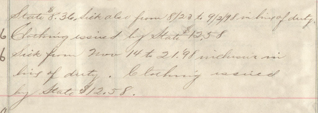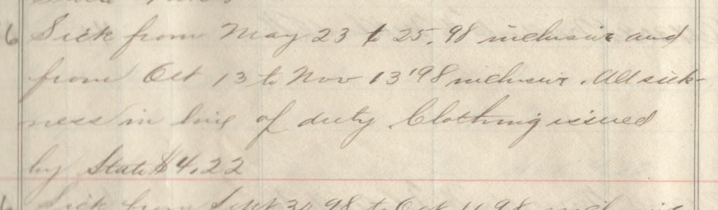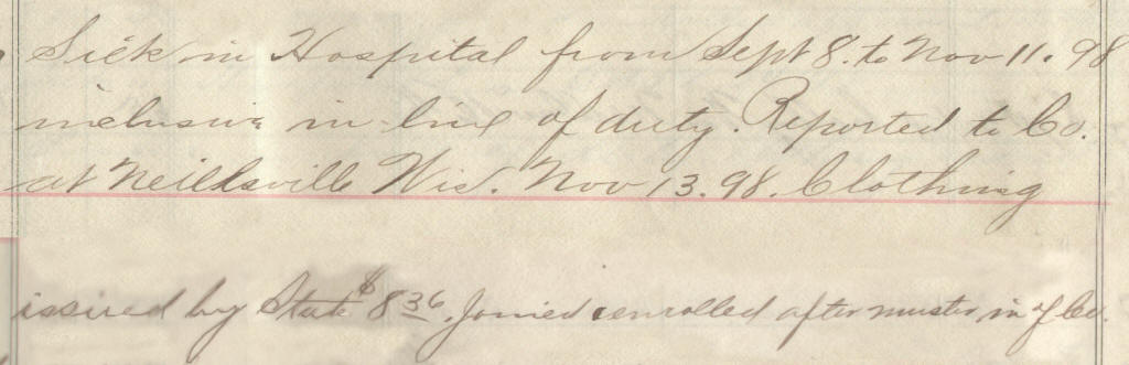 66 | Maxwell, William | Pvt | 4/28/1898 | Neillsville, Wis | Capt. Hommel | 2 yr | 5/11/98 | Camp Harvey | Capt Buck | Maj Ray | 10/31/98 | Merrillan, Wis | Neillsville, Wis. | Remarks | 2 | 4 | 15.60 | 33.28 | 21.08 | 16.25 | 70.61 | .16 | 970.45 | Signature |