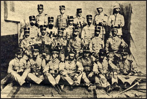 Spanish Officers, stationed in Puerto Rico before the outbreak of the 1898 war posing in their fighting finery [Photo].