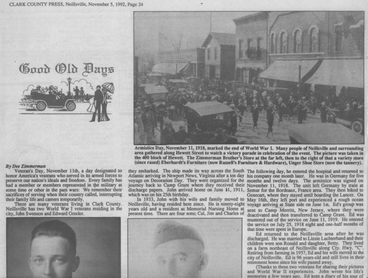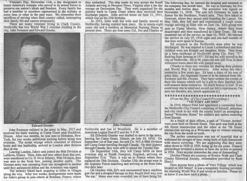Clark County, Wisconsin WW I Veterans
