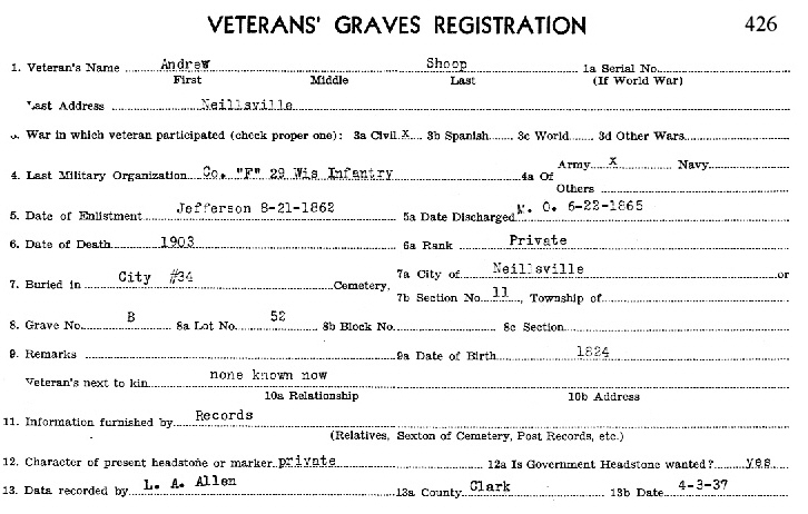 Shaver | Aaron | NEILLSVILLE CITY | PINE VALLEY | 1821-1903; Co. G, 106th NY | 17 MAY 1821 - 4 APR 1903 | |