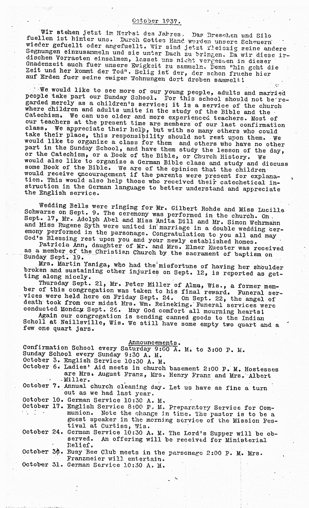 1937 Evangilical and Reformed Church Newsletter
