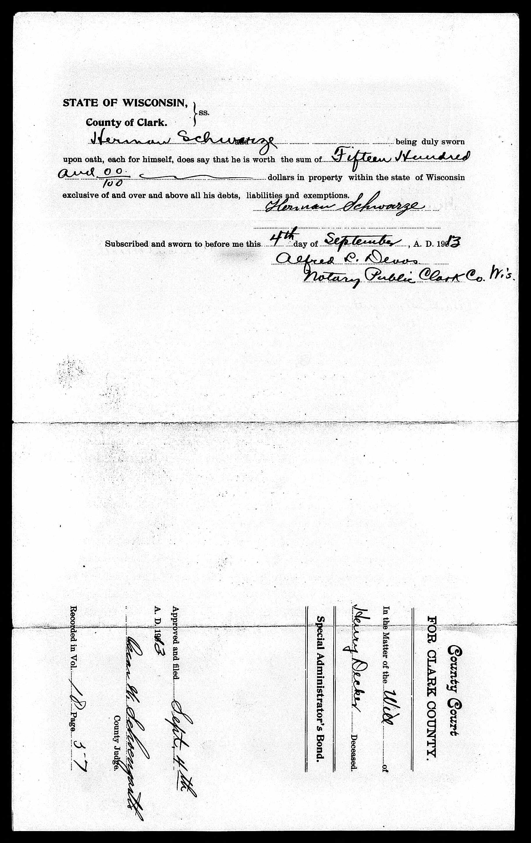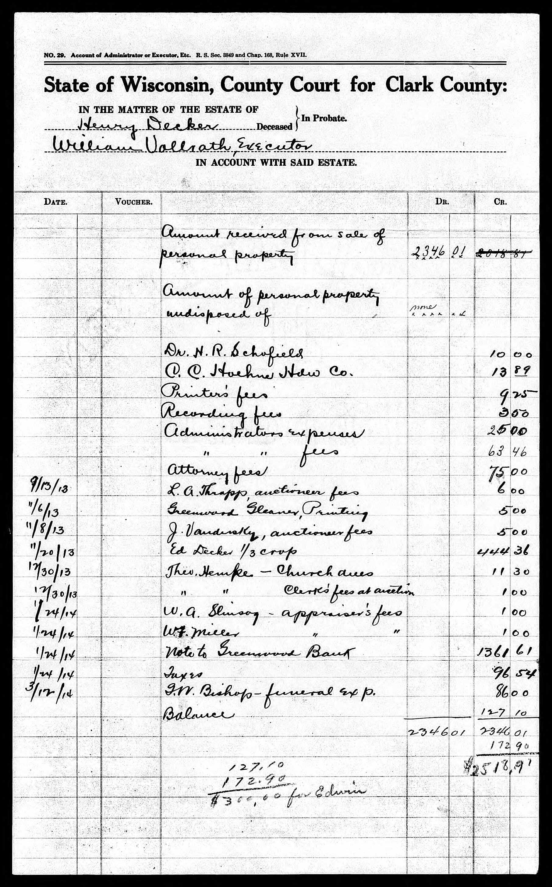 Henry Decker Estate Documents from 1913