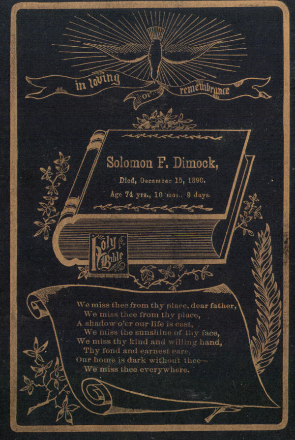 Dec. 15, 1890 Funeral Card for Solomon F. Dimock
