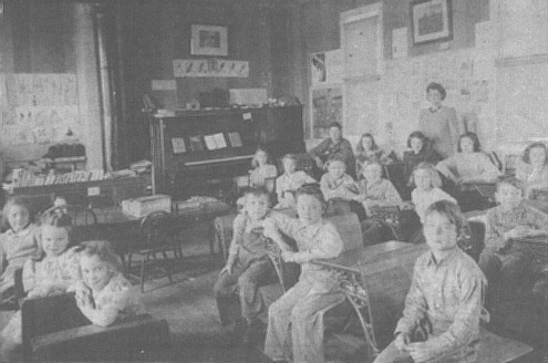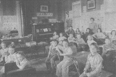 1948 Shortville School L to R, Front to Back: Arlene Trachte, Daisy Hart, Janice Hanson, Larry DeHart, Billy Hanson, Roger Phillips; Wayne Phillips, Sharon DeHart, Arnold Trachte, Jerry Hanson, Mary Lou Hagie, Joan Matieziak, Ellen Holub, Ann DeHart, Joanne Stevens, Pat Phillips, George Reinart; Mrs. Della Botnen, teacher. Source: Clark Co. Press, Jan. 21, 1998. |