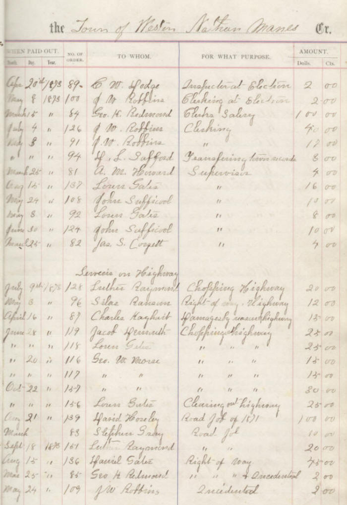 Names Mentioned Above: C. W. Dodge or Hodge, - - Robbins, Geo. H. Redmond, J. W. Robbins, - L. Safford or Sufford, A. M. Howard, Laura Gates, John Sufficol, James S. Corzett, Luther Raymond, Silas Ransom, Charles Haghurt, Jacob -, George W. Morse, David Hosely, Stephen Gray, Harriet Gates.