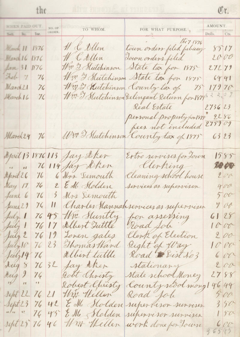 Names Mentioned Above: W. C. Allen; Wm. T. Hutchinson (William); Jay Aken; Mrs. Demouth; Elias M. Holden; Charles Hannah; Wm. Huntly (William Huntley); Albert Tuttle; Loren Gates, Thomas Ward; Robert Christy (Christie); William Weller (son of Henry Weller).