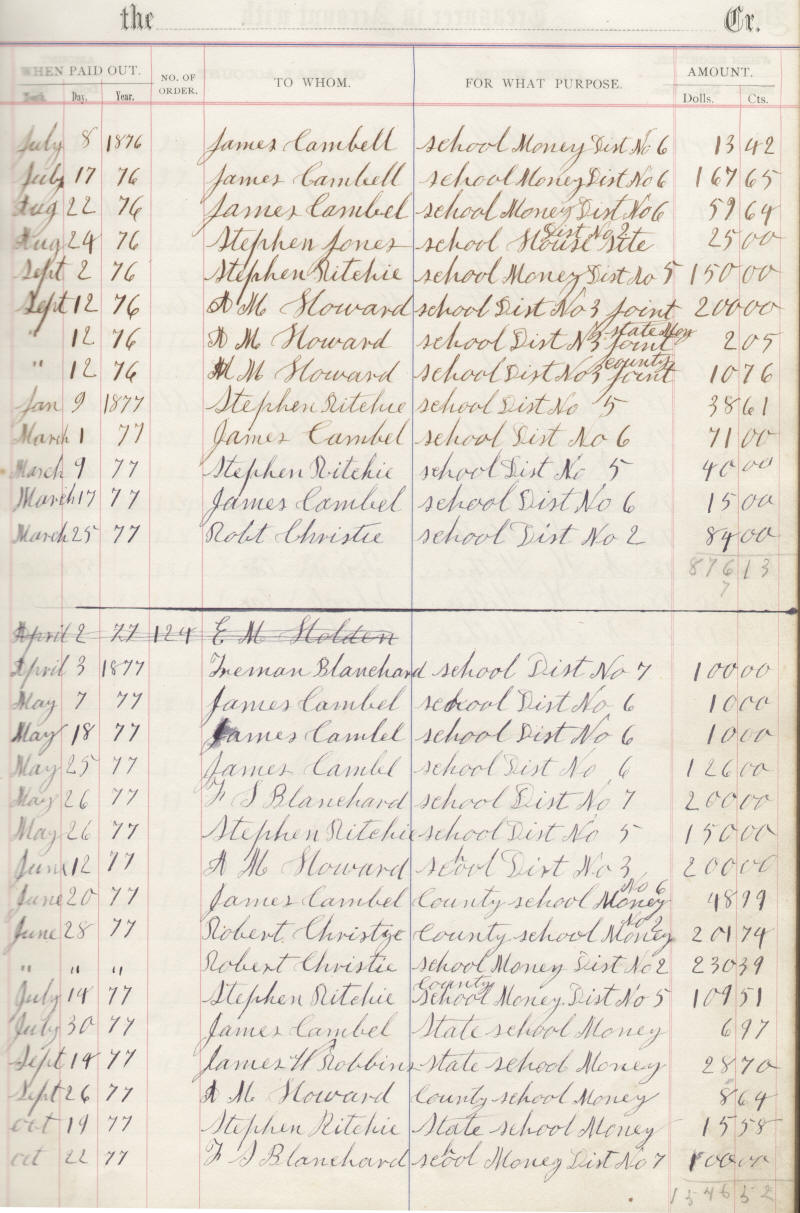1877 Weston Township Treasurer's Ledger-2