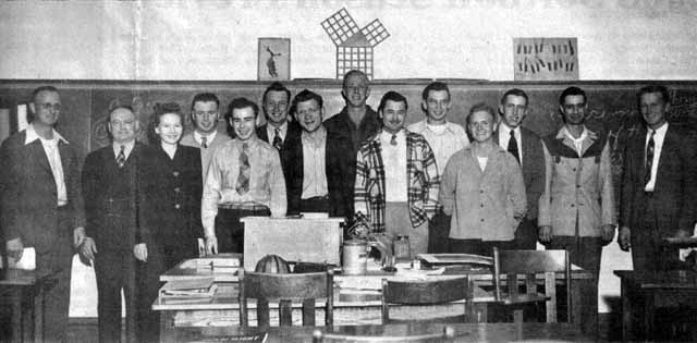 Do you recognize any of these flying students from the Thorp and Stanley area that participated in a class offered at Stanley High School in 1950? It was taught by Flight Instructor Justin Rosemeyer and was called “Ground School.” This course was part of the G.I. Program. Let us know what you may recall.