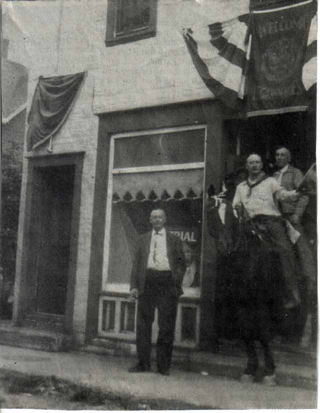 In this week’s photo, two men of questionable sobriety are posed on a horse, riding out of a local tavern.  Apparently, a 4th of July celebration played a part in coordinating this spectacle.  Do you know who these men are?  Do you know where this was taken, or when?  Let us know, and we will pass the information on to our readers.