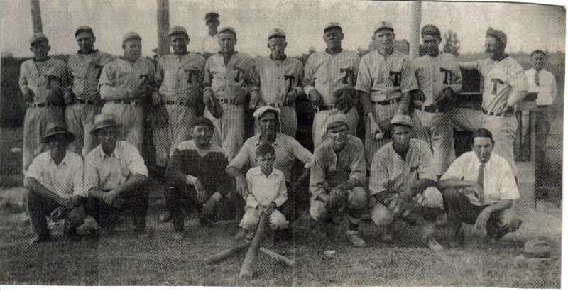 Although these gentlemen may be effectuating the appearance of nonchalance, leaning casually against the fence as though they have not a care in the world, they’re also ready to “play ball.” Who are they and when was this photograph taken? What kind of record did this Thorp team from “way back when” have?