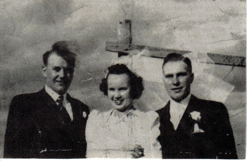 Here is a handsome threesome celebrating a wedding here in Thorp many years ago. Although the man on the left is now 97 years old and moved to Chicago some years ago, we hear that he is still a loyal reader of The Thorp Courier. The wedding couple is Caroline and Eddie Janicki, whose children still reside in the Thorp area.  Who can identify the third man, and who are the Janicki’s children?