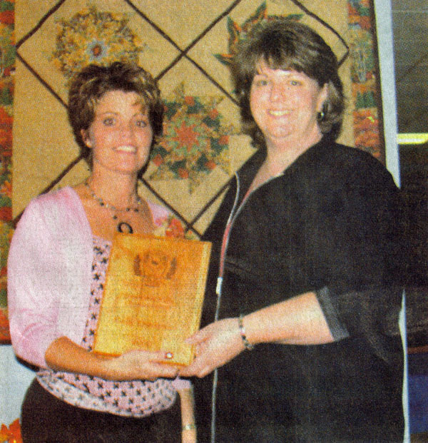 On November 4, 2006 Jennifer Steffes presented the Outstanding Young Business Person award to Shelly Frankewicz. Shelly has been active in the community workforce for several years and has owned and operated her business, Northern Shears and Tanning, for 3 years. Her business employs two people and she is very involved in the Gilman and Thorp school work-study program. Shelly married Jason Frankewicz in 1998 and is the mother of four children. As if this is not enough to keep her hours filled, she still makes time for her community. Shelly has been involved with the Miss Thorp Program for seven years now and does volunteer work for school and city functions. Spending time outdoors with her family, gardening and basket weaving are just a few of her interests. |