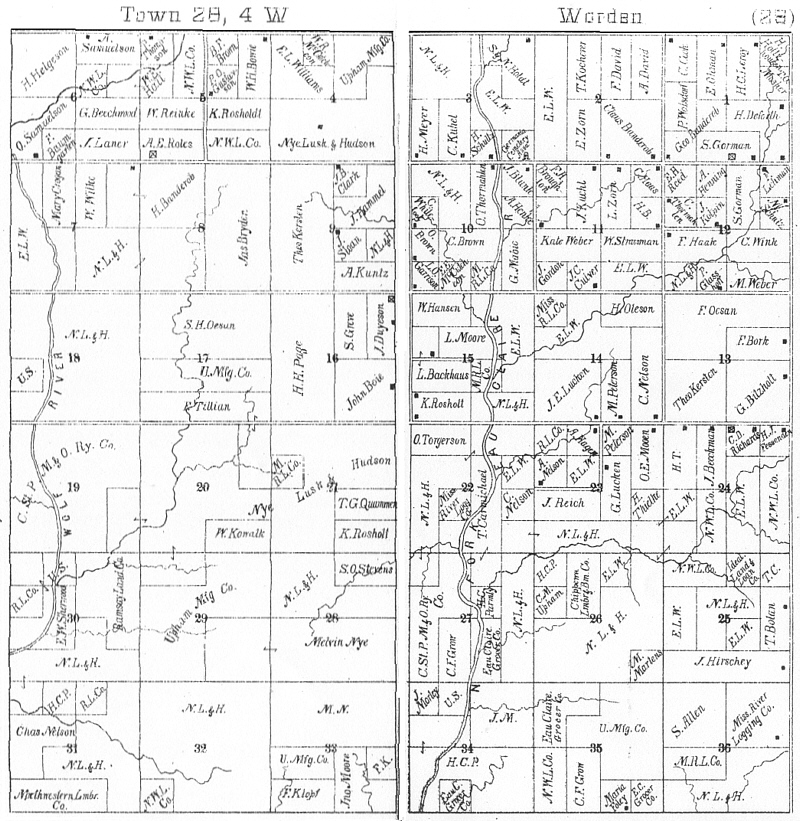 Town of Worden, Clark County, Wisconsin, 1893 plat map transcription