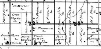 1893 Plat Map Excerpt Note: At this time; Potter, Redmond, Lyons, Visgar and Dwyer are adjacent landowners to the church. |